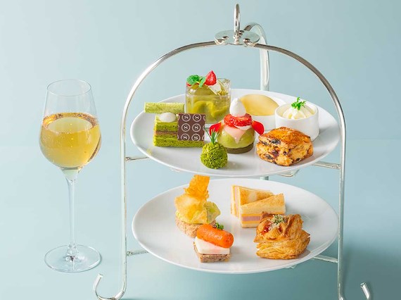 夕方からはシャンパンとともに楽しめるアフタヌーンティーを。夜の軽いお食事にもおすすめ。